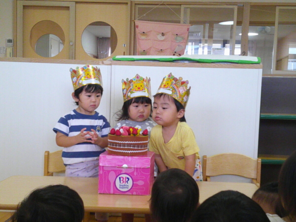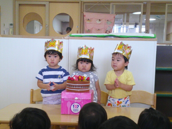 たんぽぽ組さん、れんげ組さんは3人のお友だちをお祝いしましたよ!