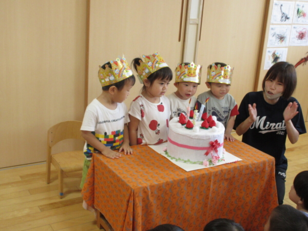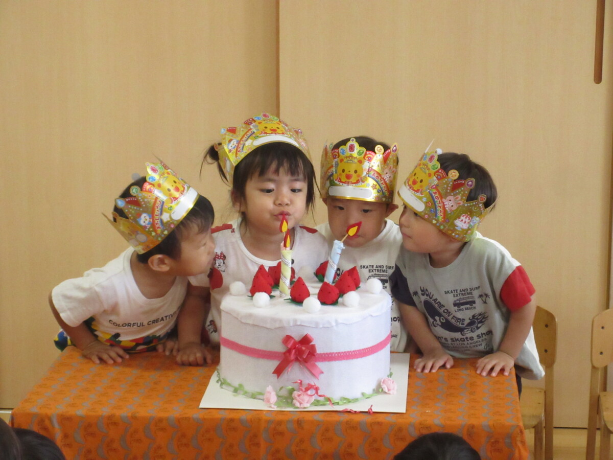 いちご組、もも組は4人のお友だちをお祝いしましたよ!