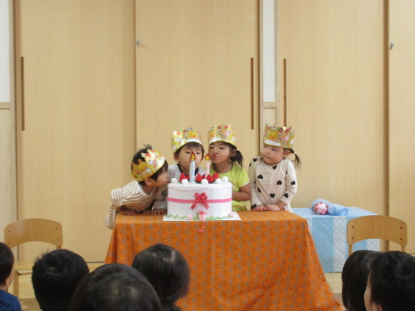 それぞれに誕生会を楽しむ子どもたち、来月はどんなお楽しみが待っているかな?