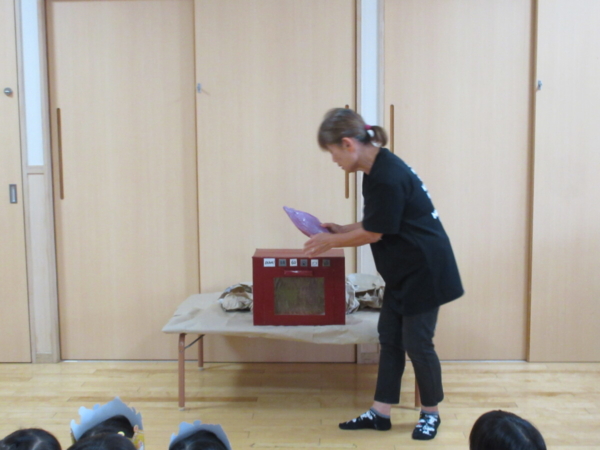 お芋をオーブンに入れて焼き芋に、、、最後は紙芝居を楽しみました。