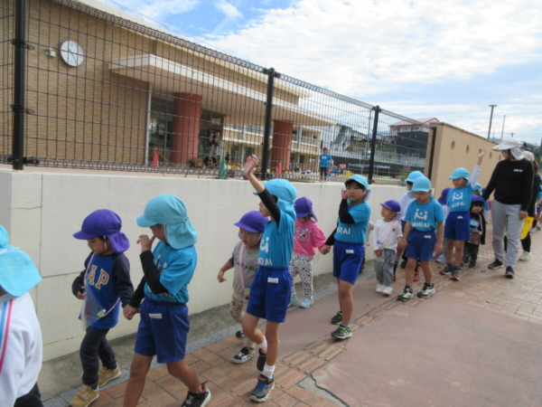 いちご組・もも組・にじ組で園の近くの「新生公園」に散歩に出かけました。