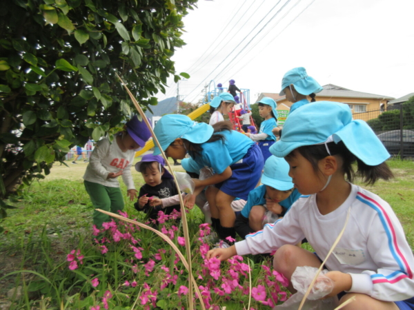 鉄棒では小さい組さんを手伝ってくれる姿が見られたり、花を一緒に探す姿も見られました。