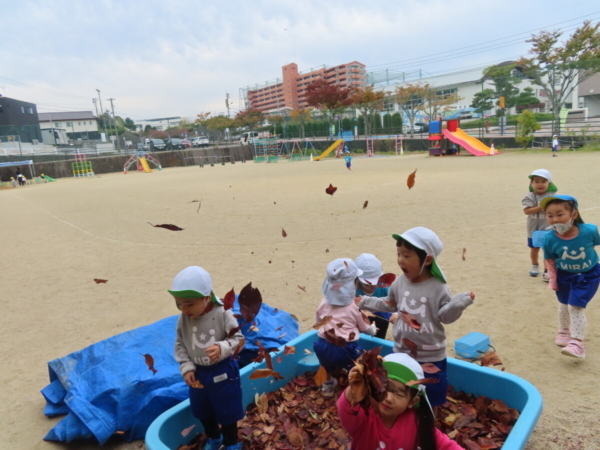 そのなかでも、落ち葉で遊ぶことに夢中になっている子どもたちです💕全身を使って思い切り楽しんでいますよ~🌟