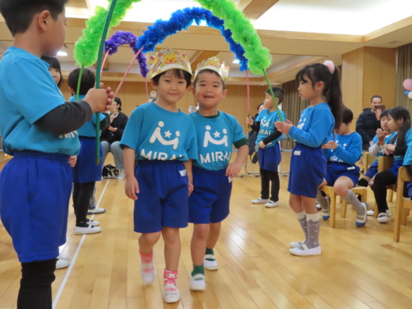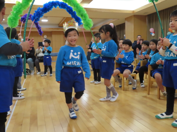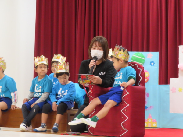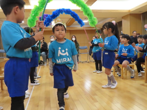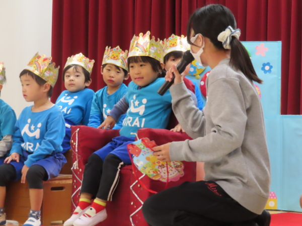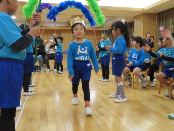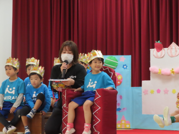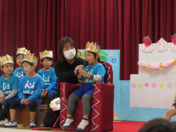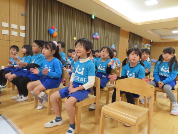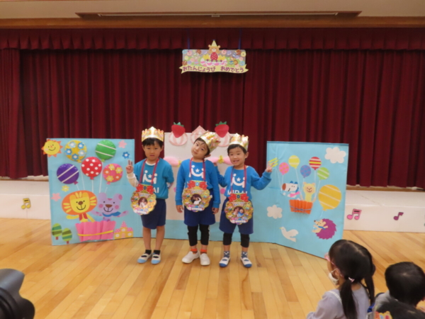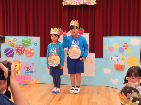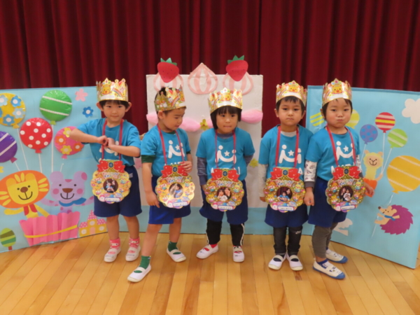 今日は、10名のお友だちをお祝いしました🎵年長さんの司会につづいて誕生児が元気に入場です!