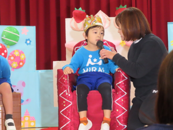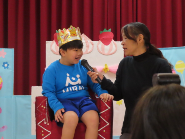 続いてインタビュー🌟「好きな食べ物」「行ってみたいところ」「大きくなったら・・」それぞれ学年ごとに質問に答えてくれましたよ💕