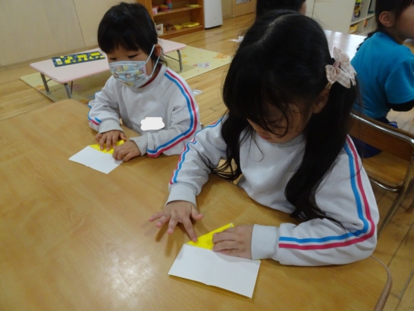 サンタクロース🎅やベル🔔を折って、クリスマス制作🎄も楽しみました!!