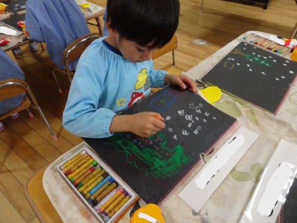 作った折り紙を制作帳に貼って、クリスマスツリー🎄やプレゼント🎁雪⛄などを描き足し、更にお部屋がクリスマスムードになりました🎅