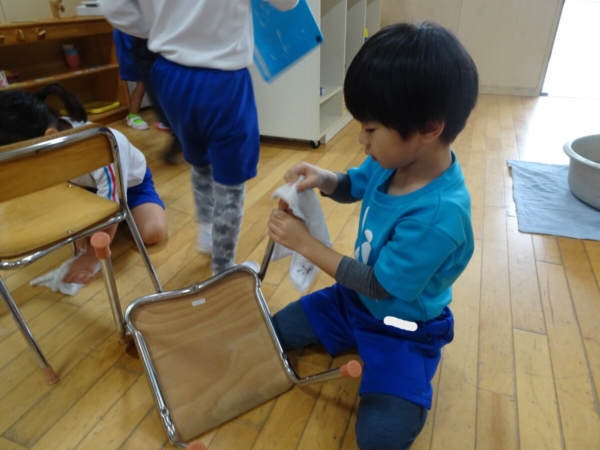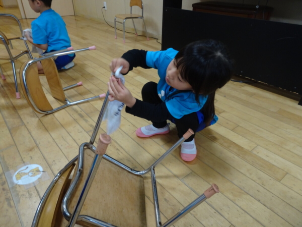 「あ、ここも!」「見て、汚れ~!」と友だちと一緒に楽しんで大掃除をしました🤗✨