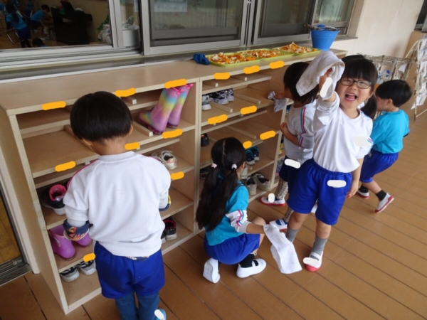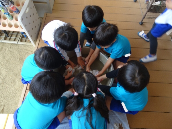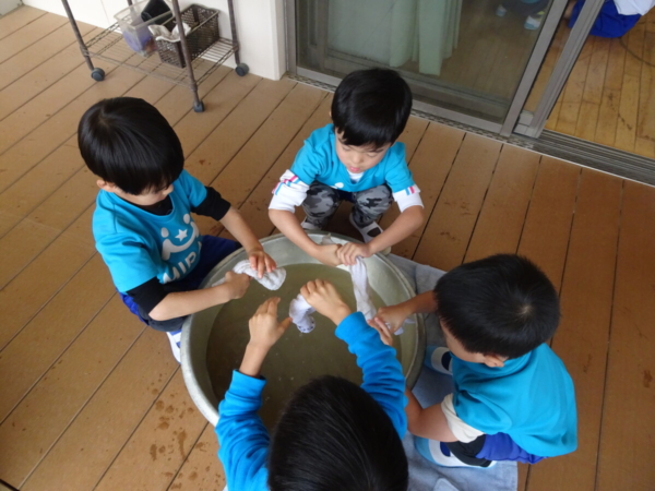 「つめた~い💦」と言いながらも、雑巾も丁寧に洗う子どもたちです👦🏻👧🏻