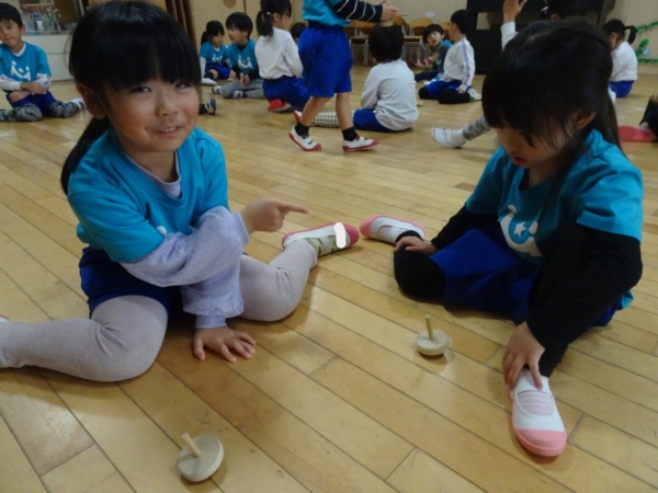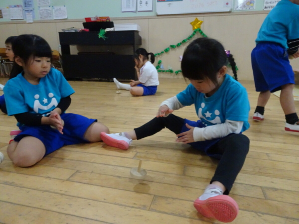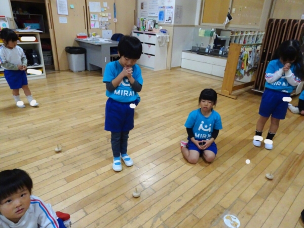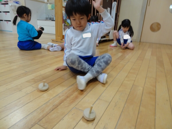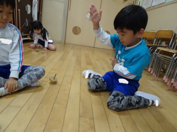 お正月遊びのこま回しにも挑戦しました☺️最初は「できん…」と言っていた子どもたちでしたが、