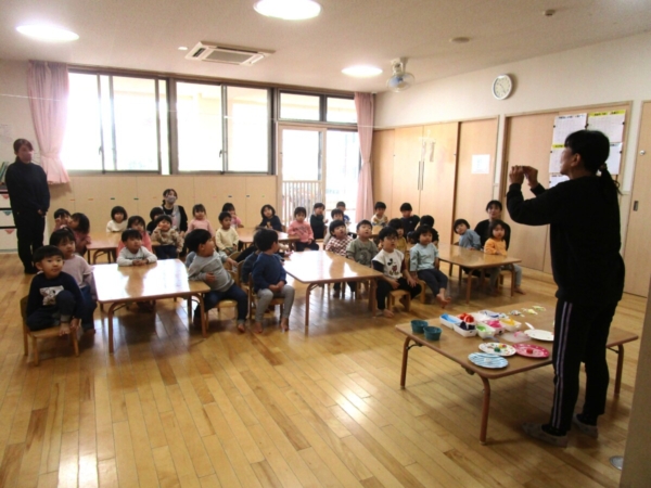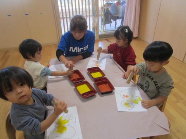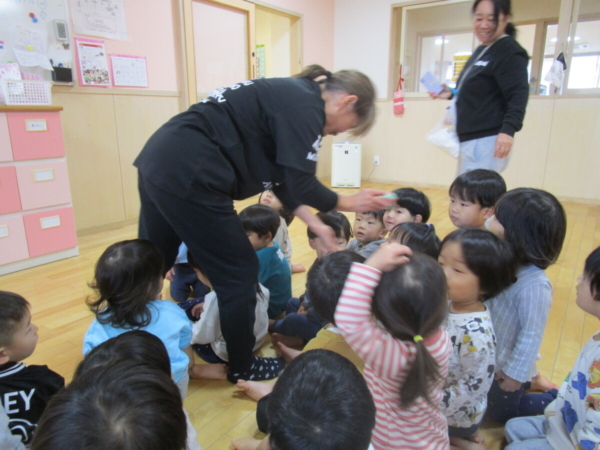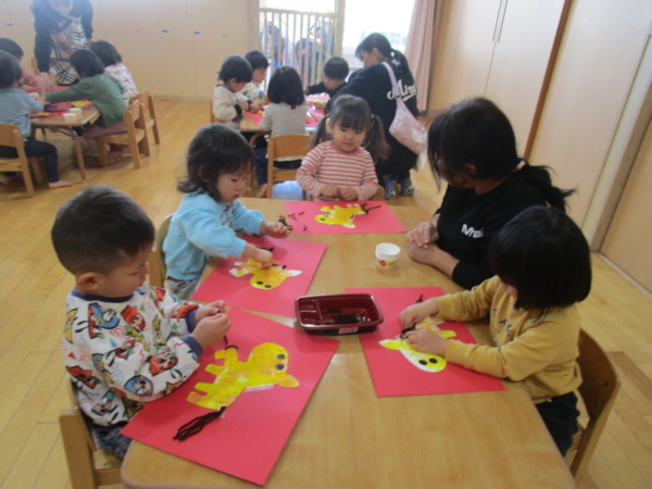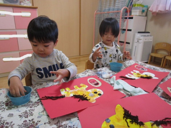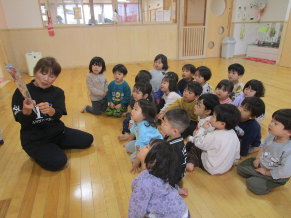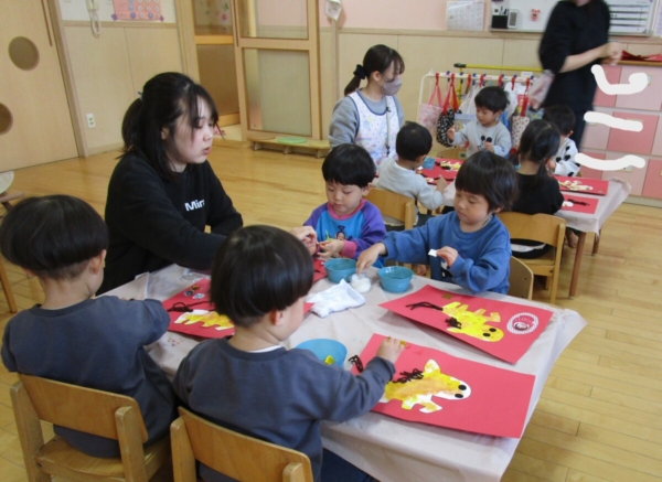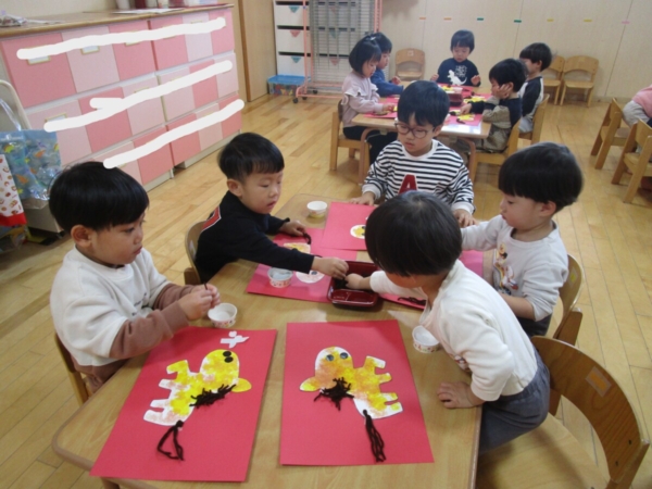 お正月の話をしたり、部屋に飾った獅子舞で子どもたちの健康を祈ったりしました。