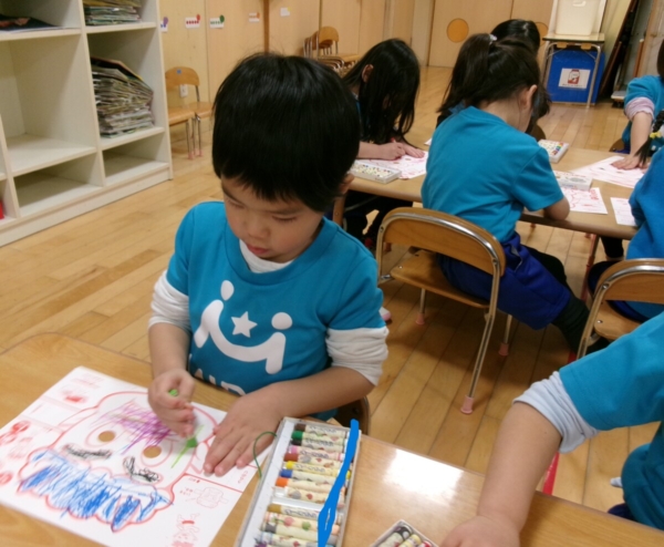 自分たちも鬼に変身しよう!ということでお面を作りました🖍