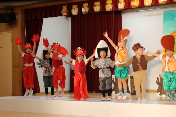 ひよこ組さんの「さるかに合戦」の劇が始まりましたよ✨✨🐰🐤