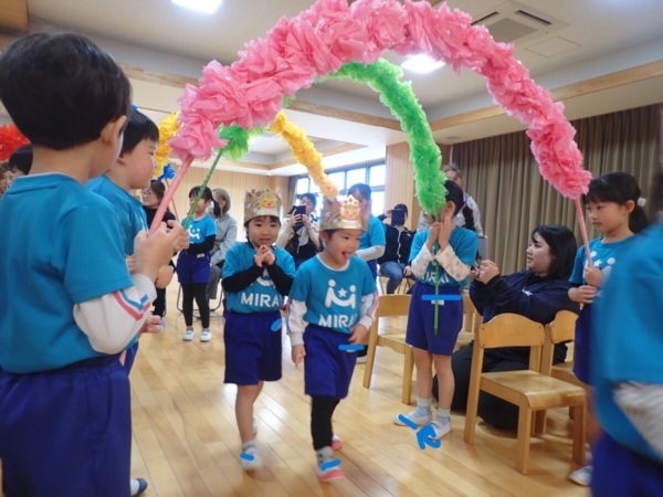 お誕生児のお友だちがアーチをくぐって入場です🎉