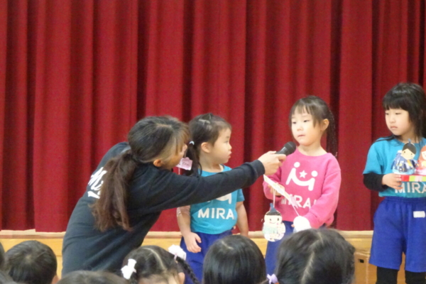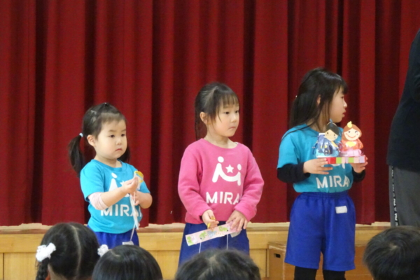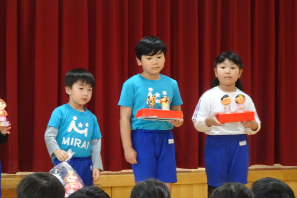各学年から代表のお友だちが前に出て、作ったひなまつりの制作を紹介してくれました🎤