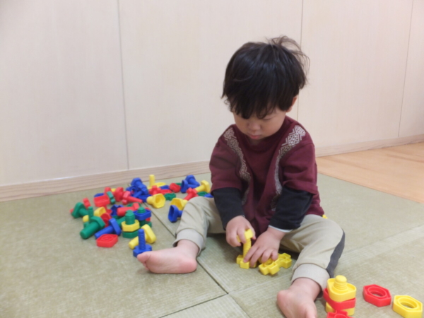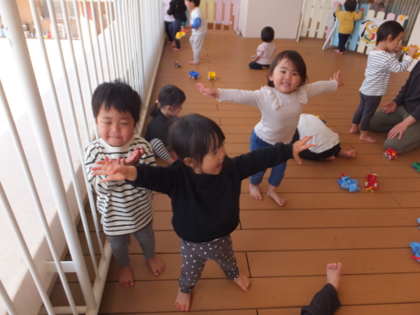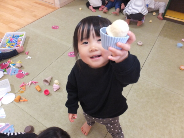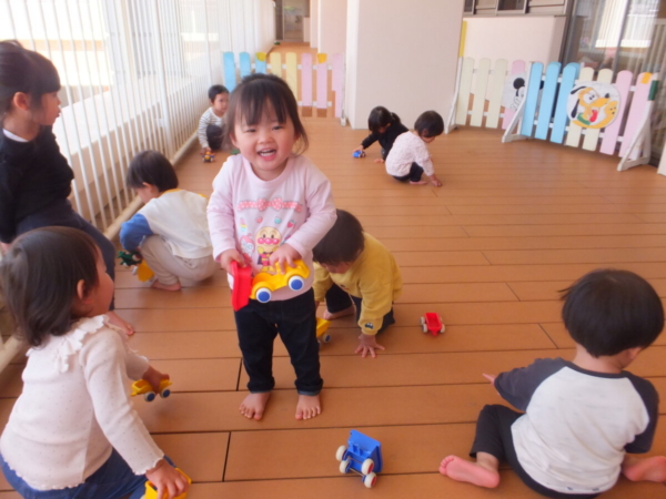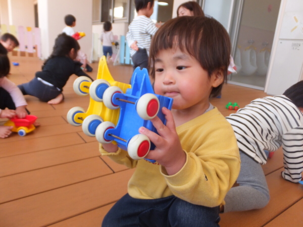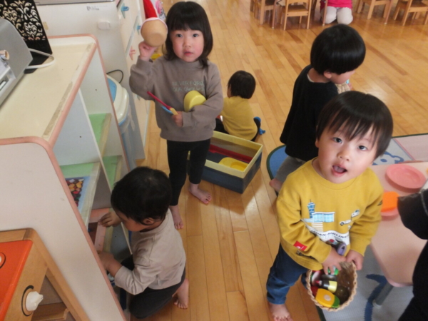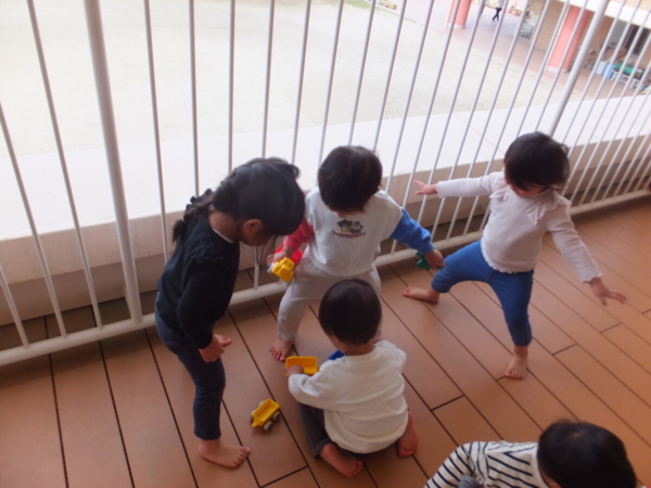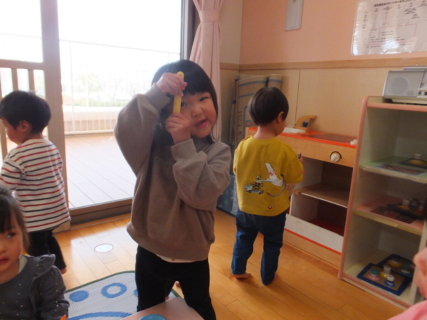 一つお兄さん・お姉さんになり、新しいお部屋や先生に少しドキドキしながらも、好きな遊びを見つけて楽しむ姿が見られています。