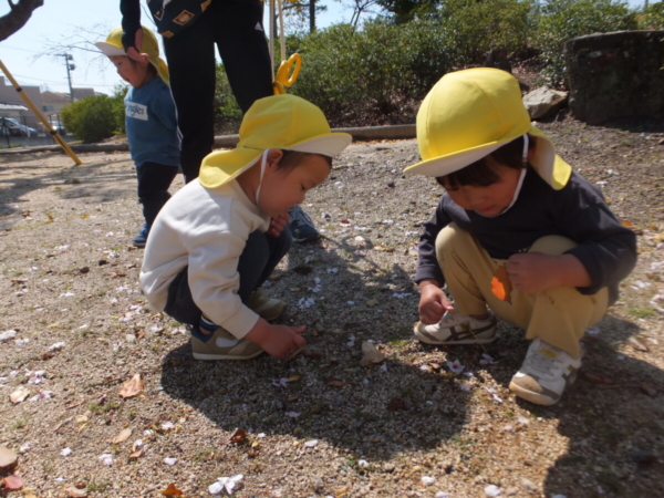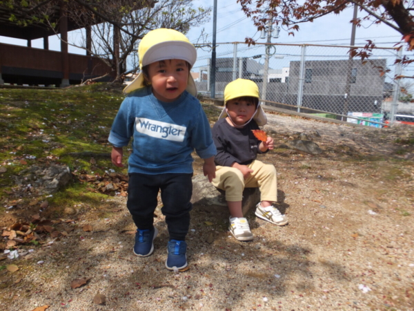春の自然に触れながら、のびのびと過ごしています。