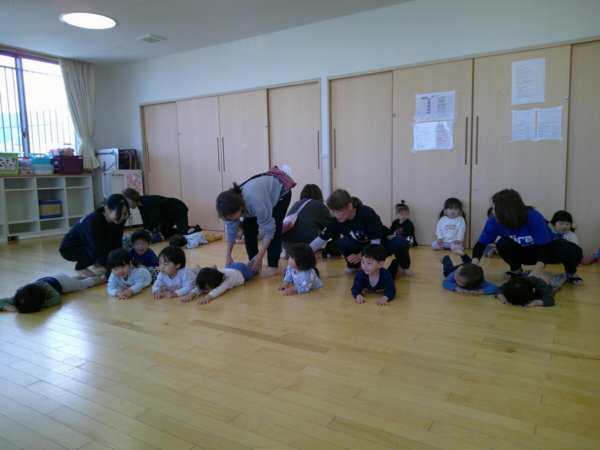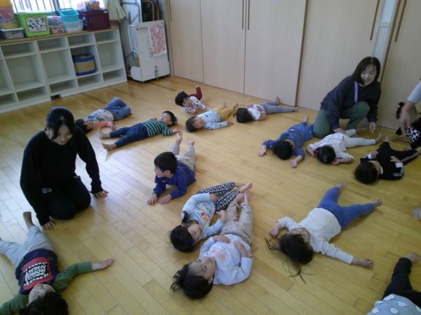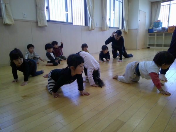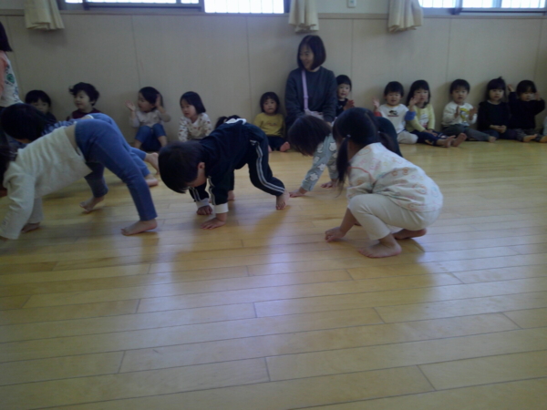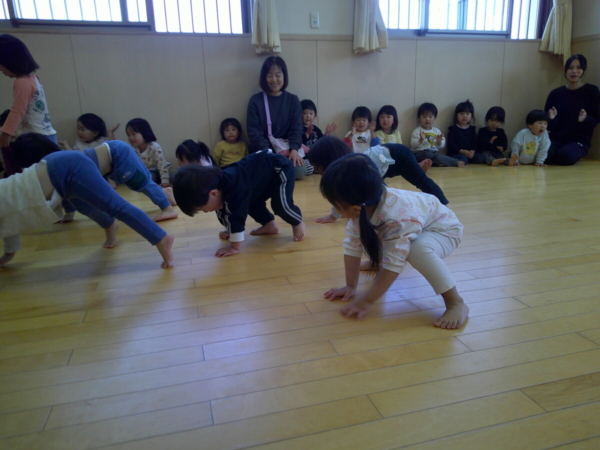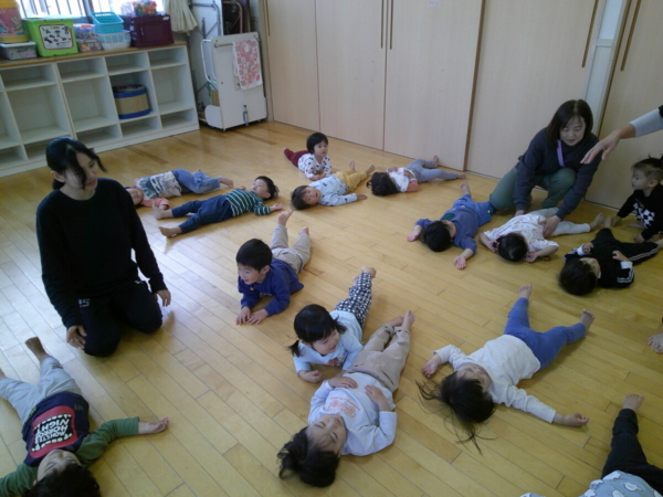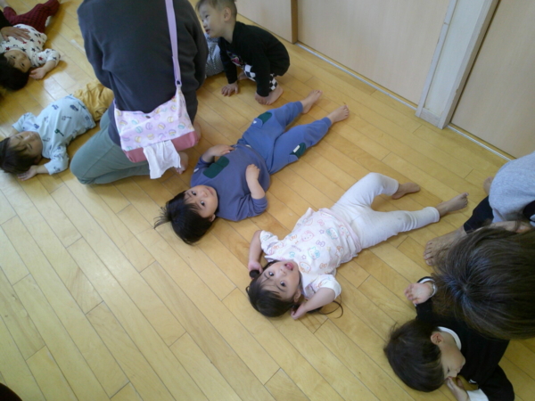 うさぎ、金魚、あひる、汽車、とんぼなど、をしました。