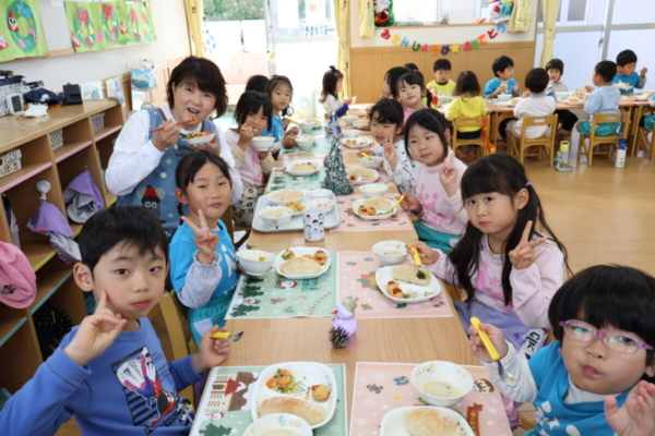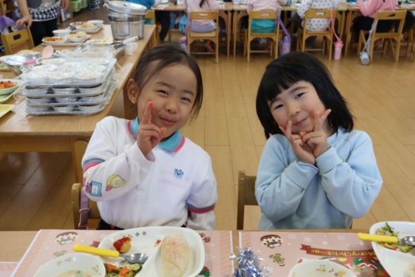 給食の先生もクリスマスバージョンで