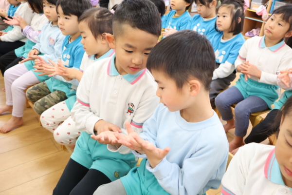 「手洗いのうた♪」に合わせて