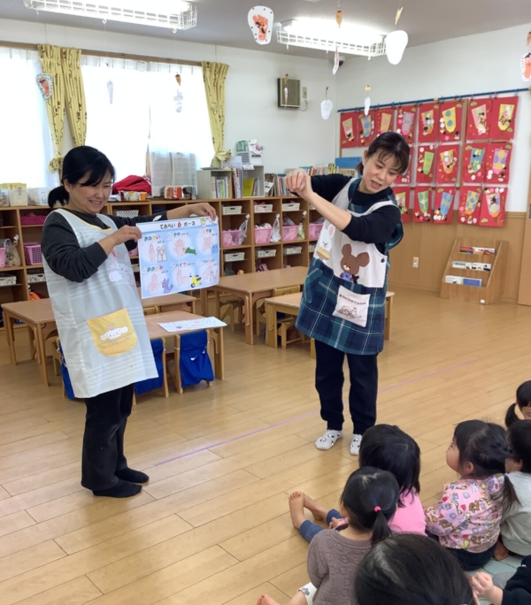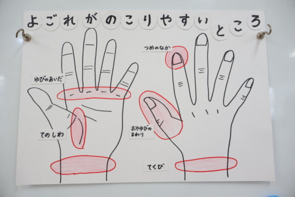 看護師の先生から手洗いのお話を