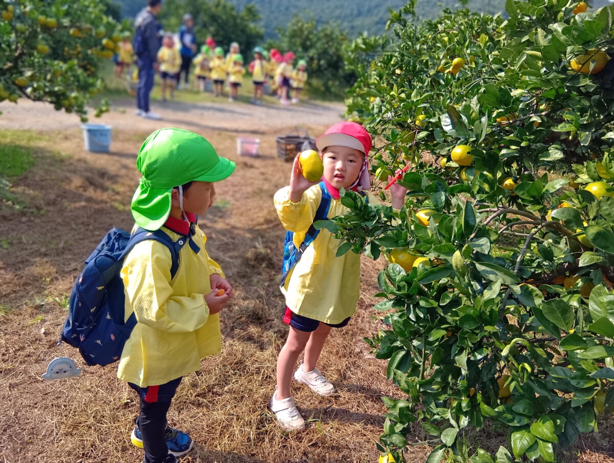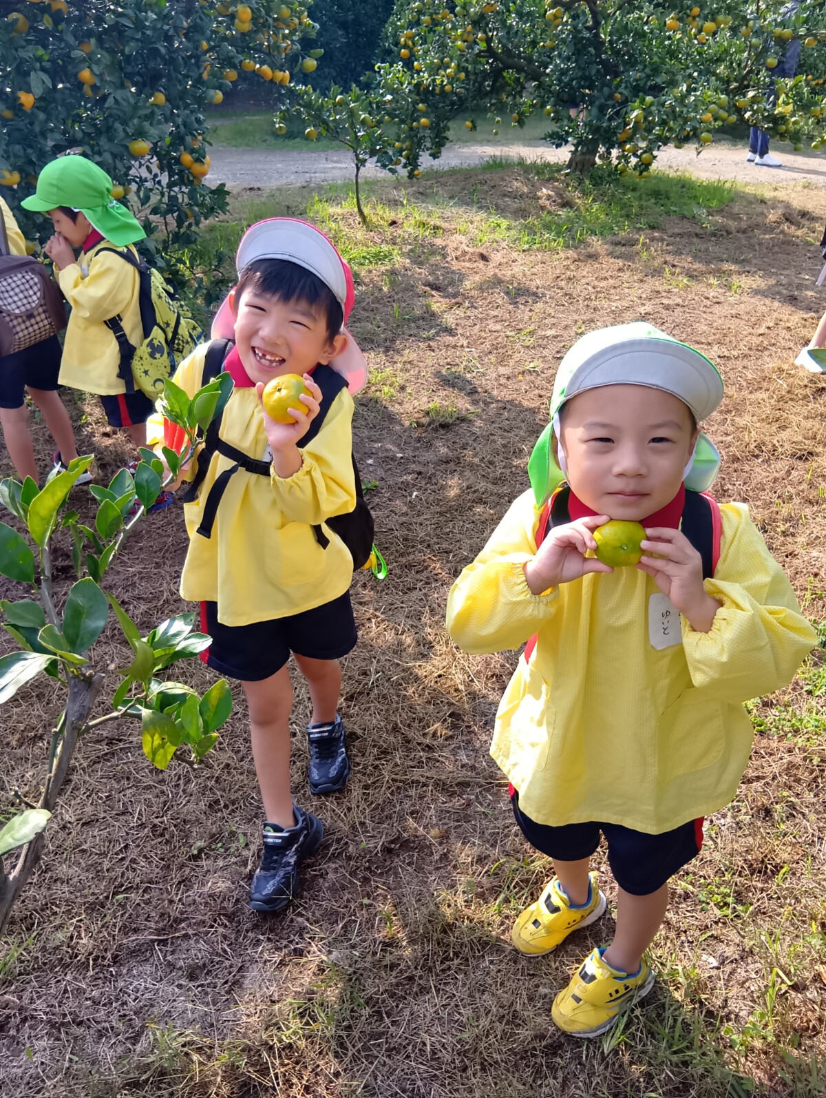「美味しいみかん見つけるぞー!」「大きいみかんがいいな~♪」と楽しい会話が弾んでいました。