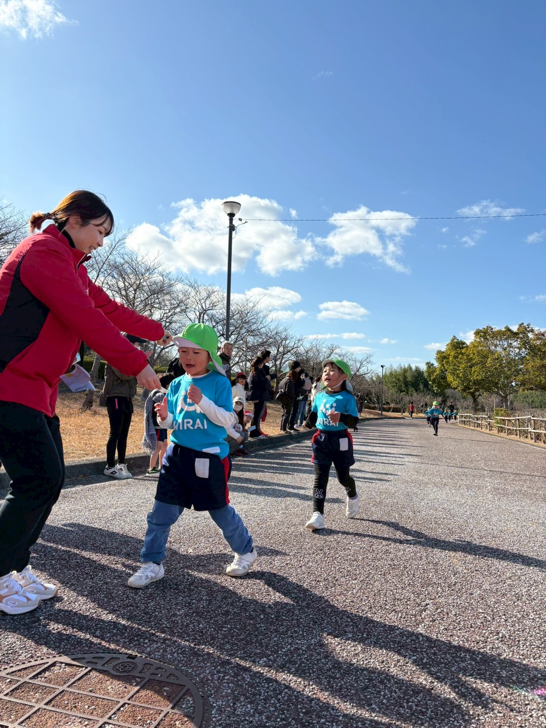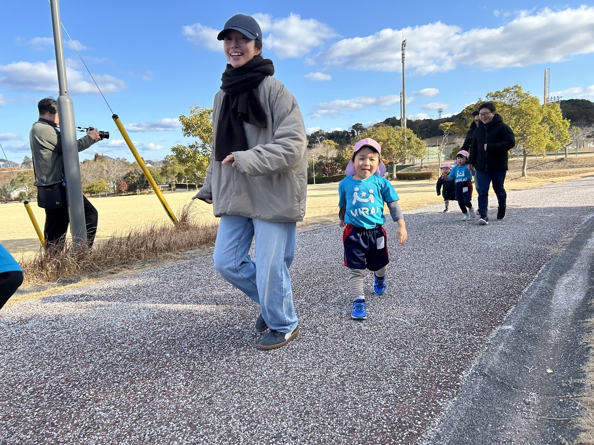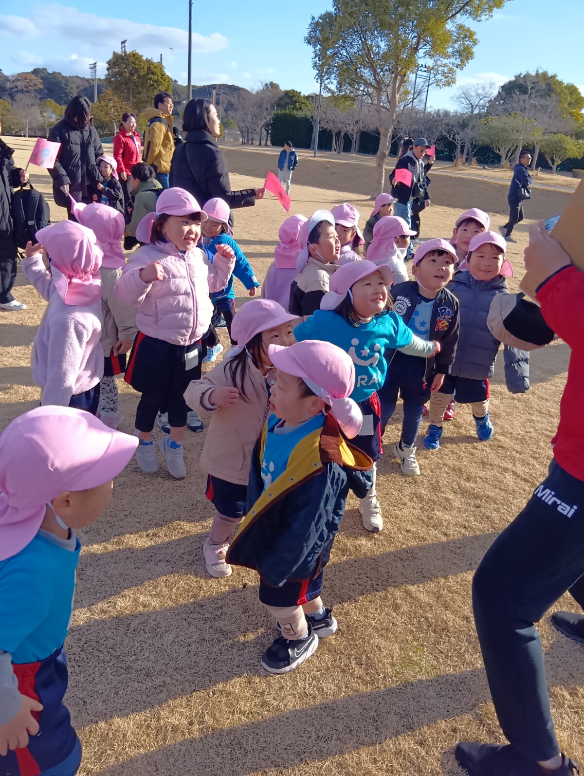 みんなの楽しみな気持ちを表したかのような快晴☀のマラソン日和となり、寒さもへっちゃら!上着を脱いで参加するお友だちもいました😊元気いっぱい、子どもは風の子!ですね💕