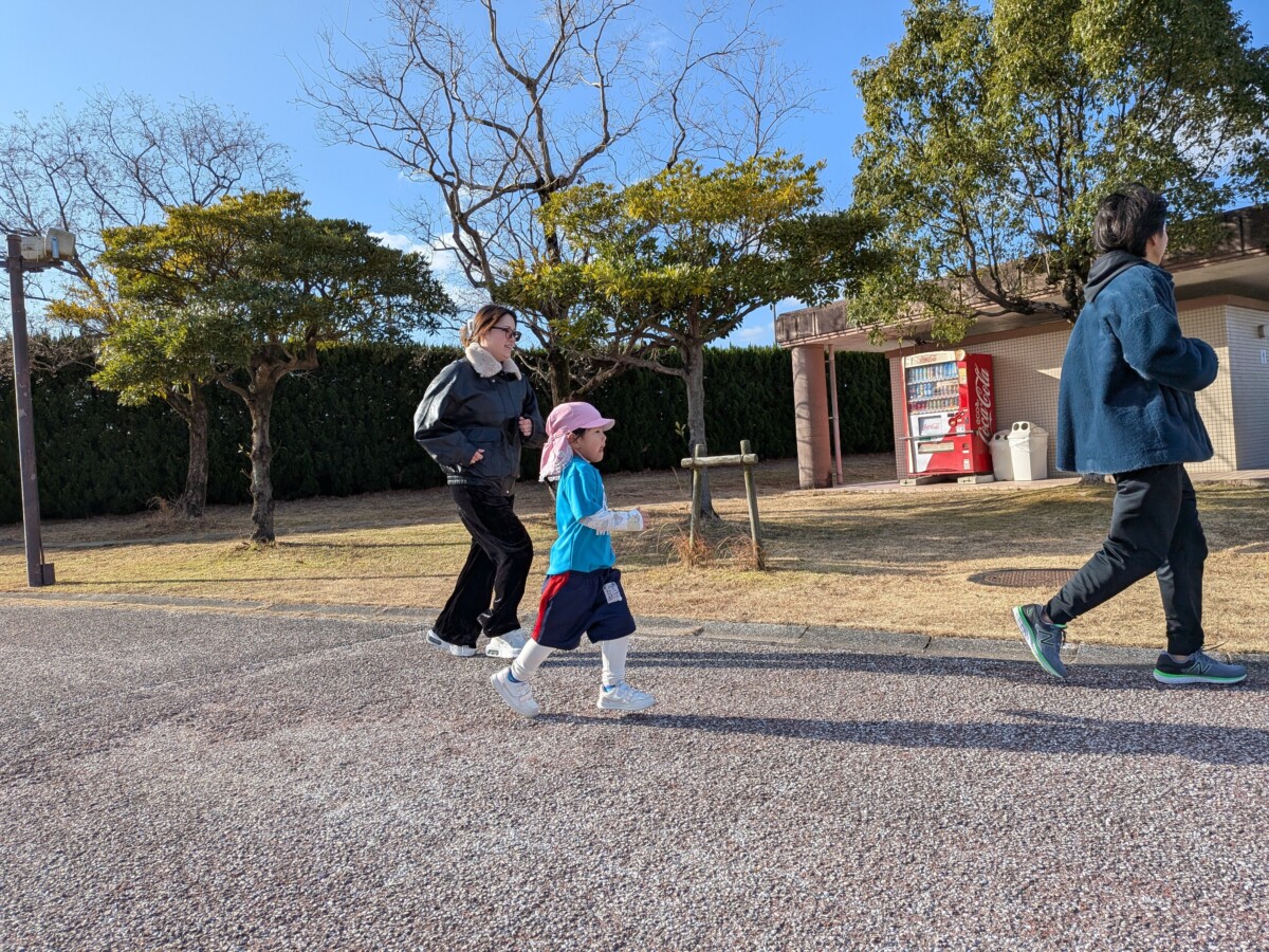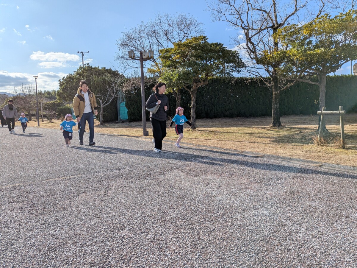 子どもたちのマラソンタイム後は、お家の方と一緒に走るマラソンタイム💨