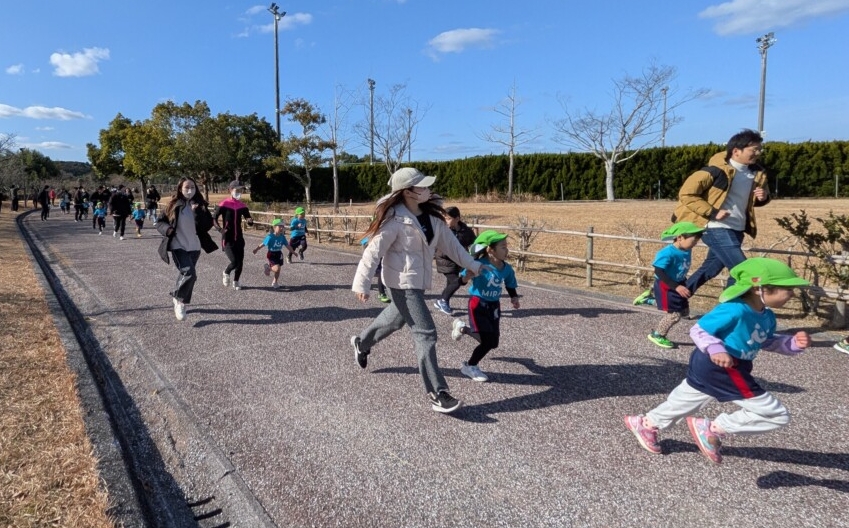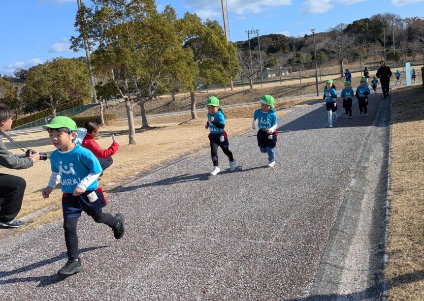 本日、なまずの郷でマラソン大会がありました!トップバッターは、にじぐみ!!