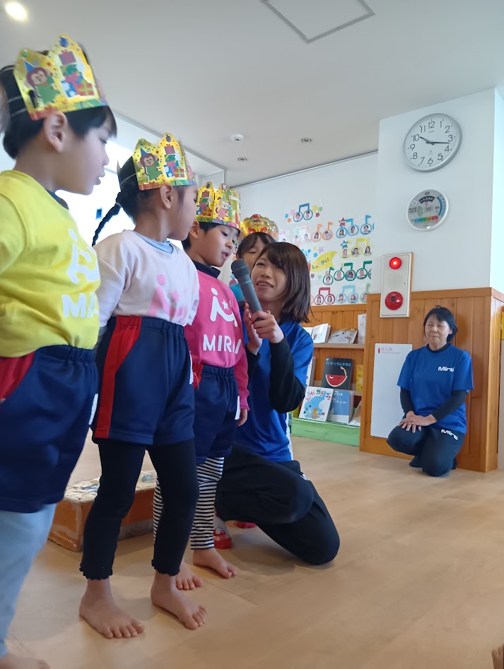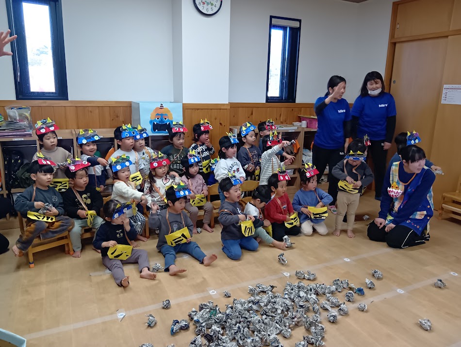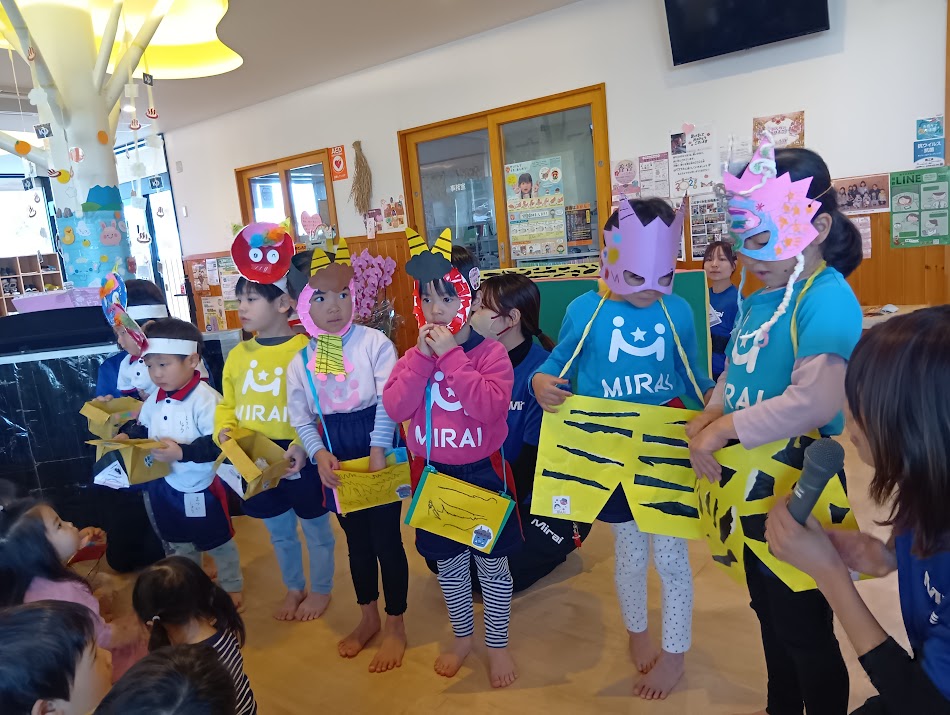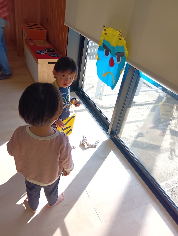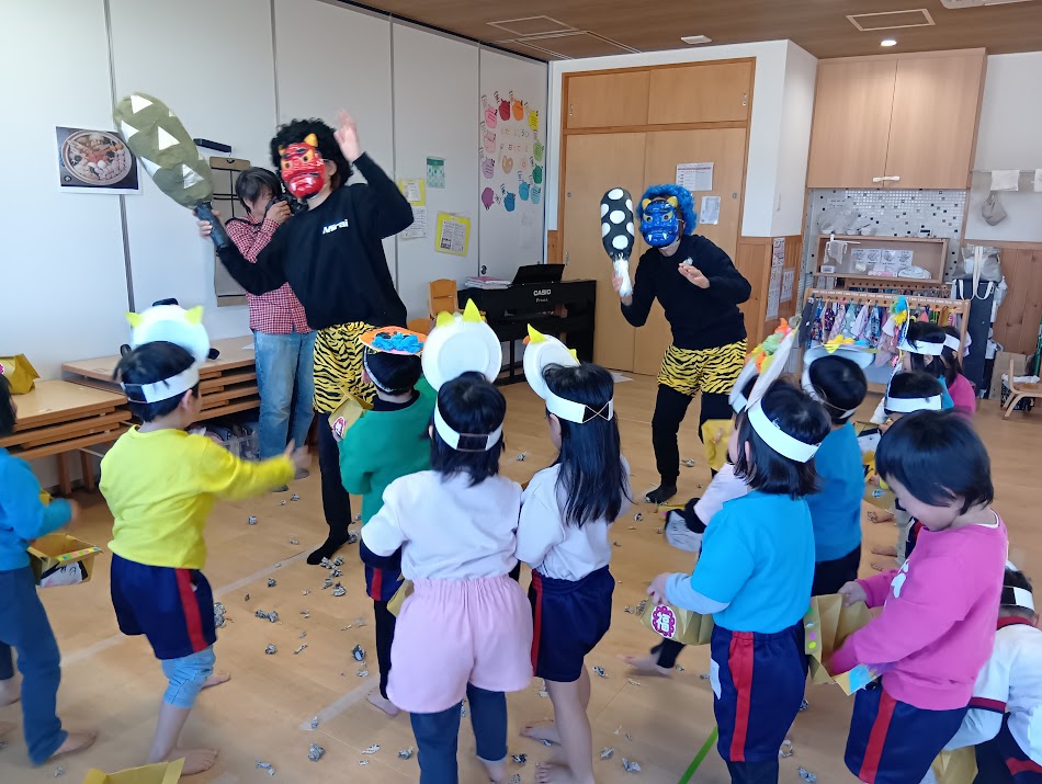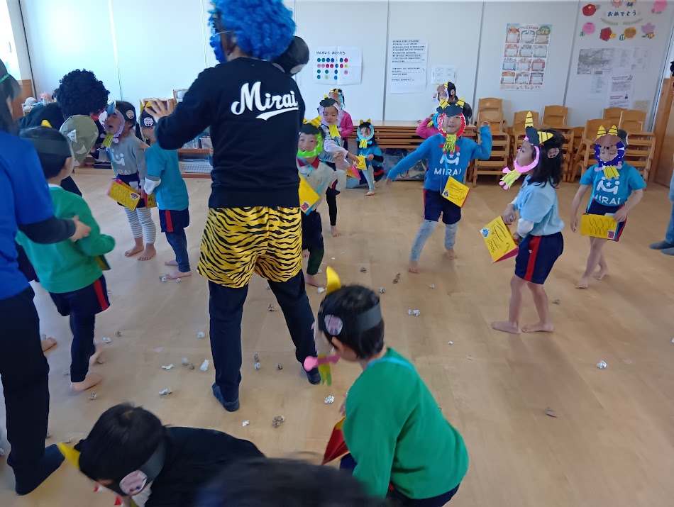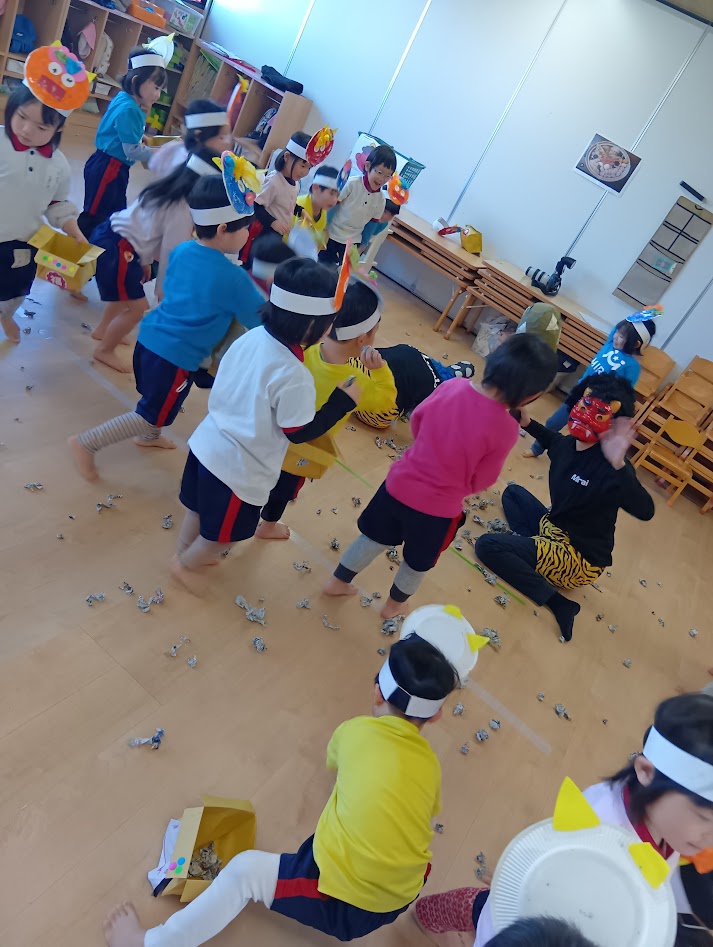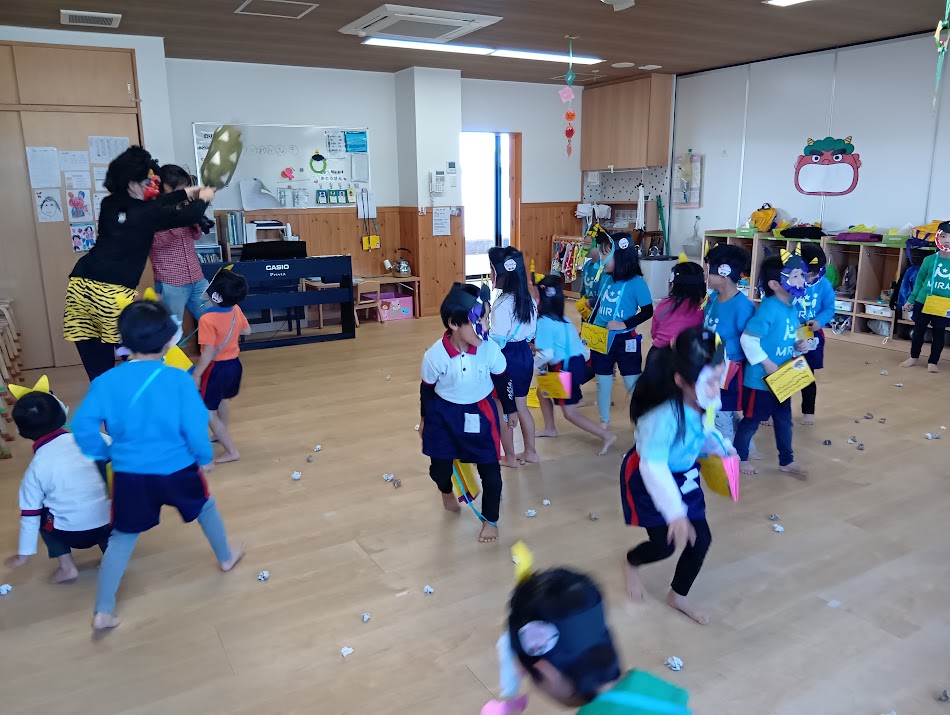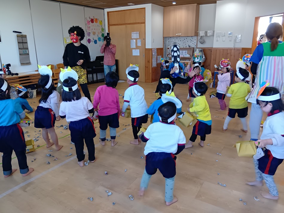 続いて季節の歌「豆まき」を元気よく歌いました🎵