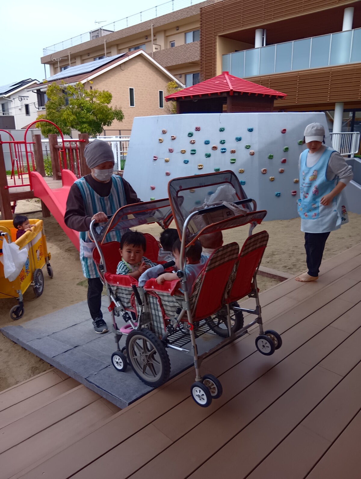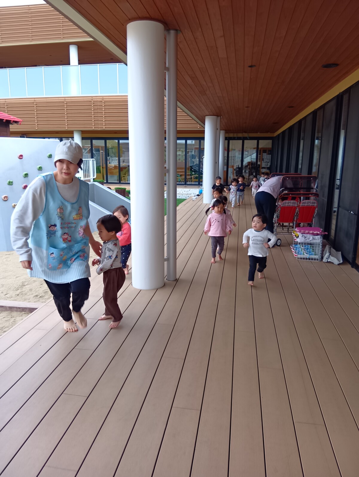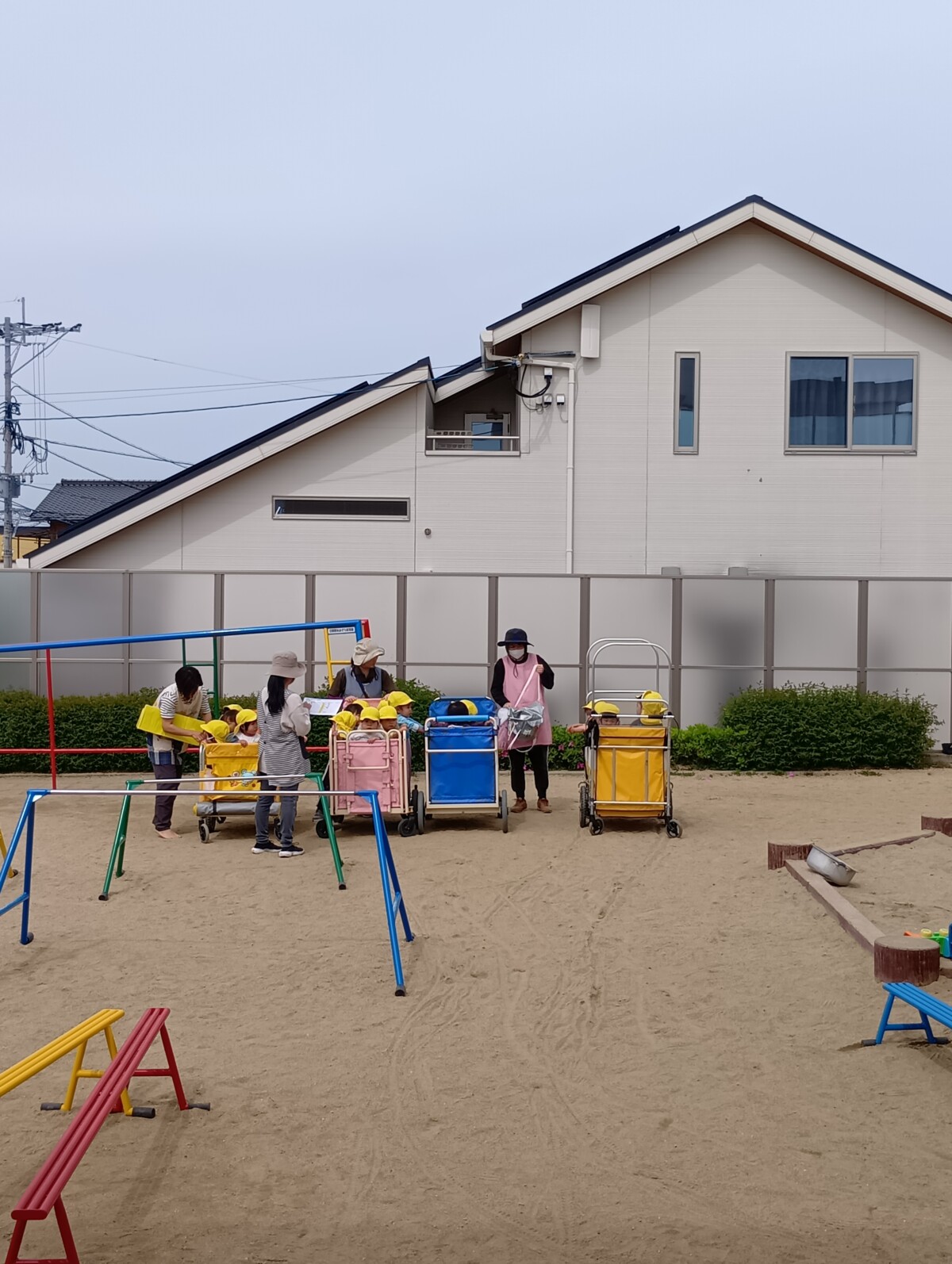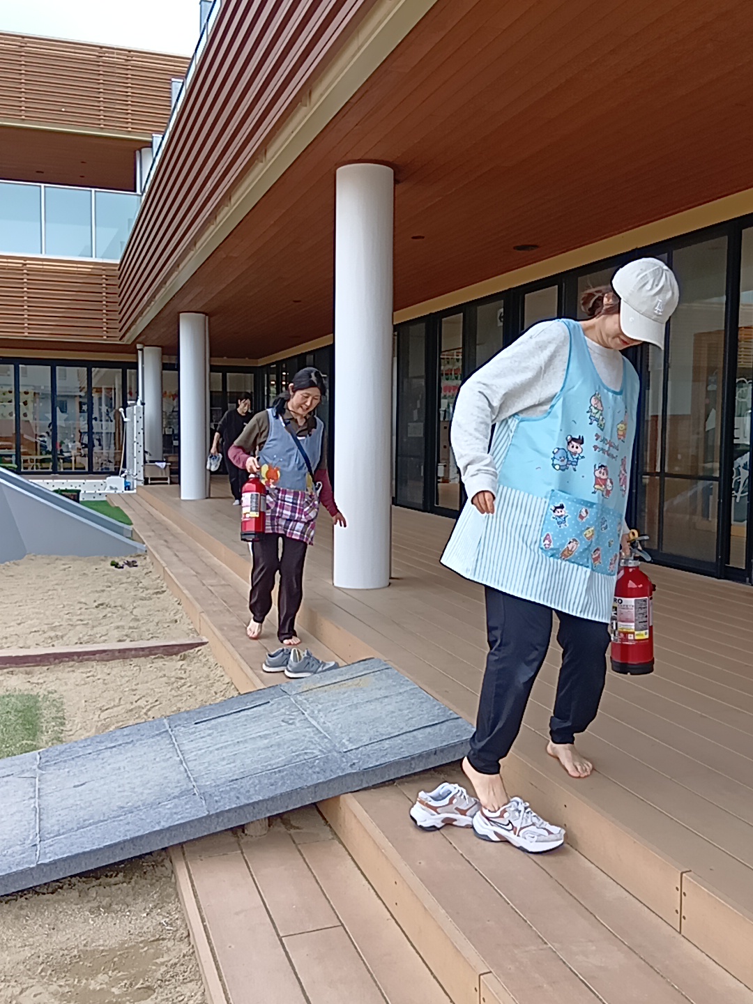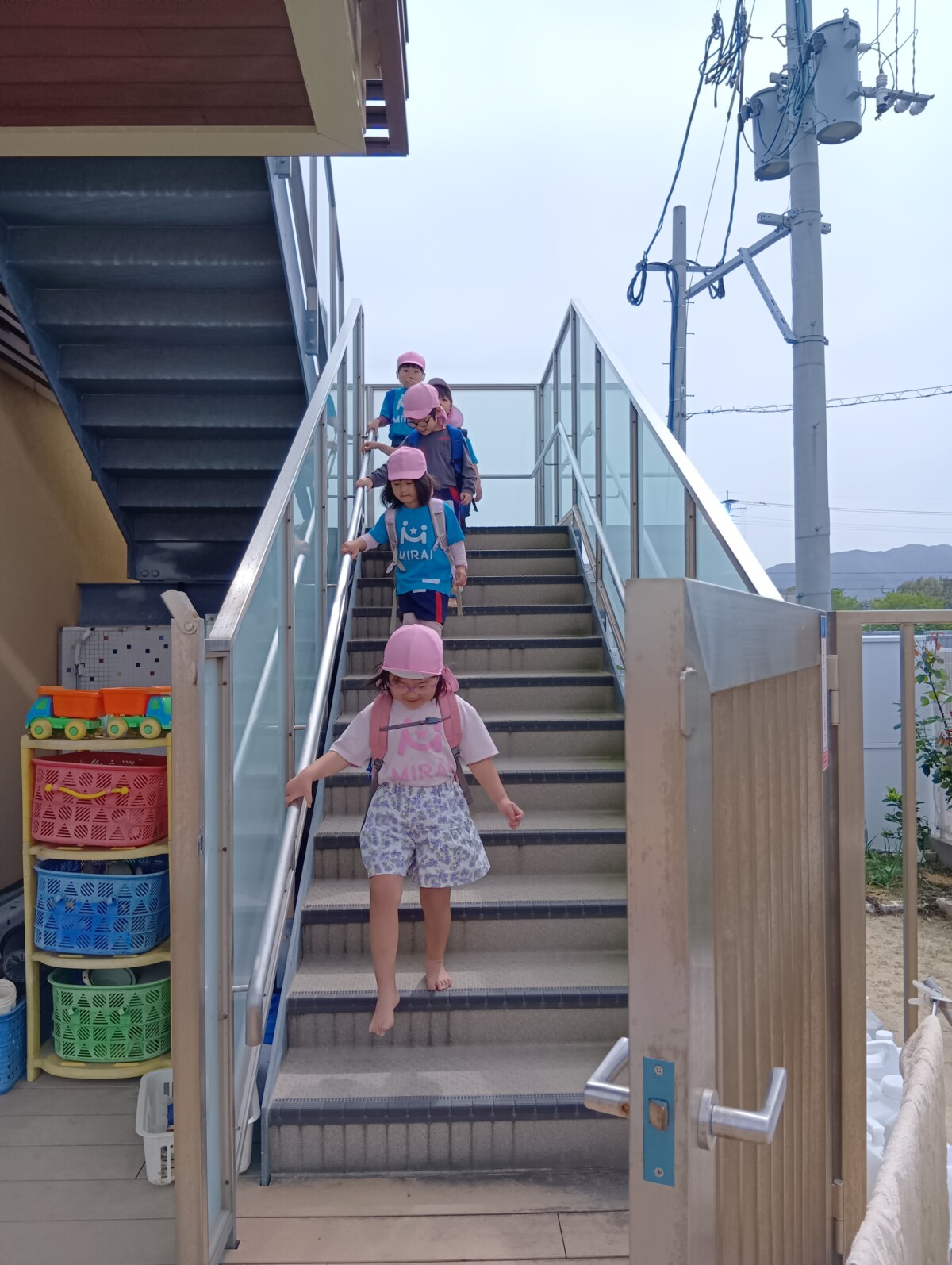 にじぐみは初めて2階からの避難、こだまぐみは外階段からの避難です。