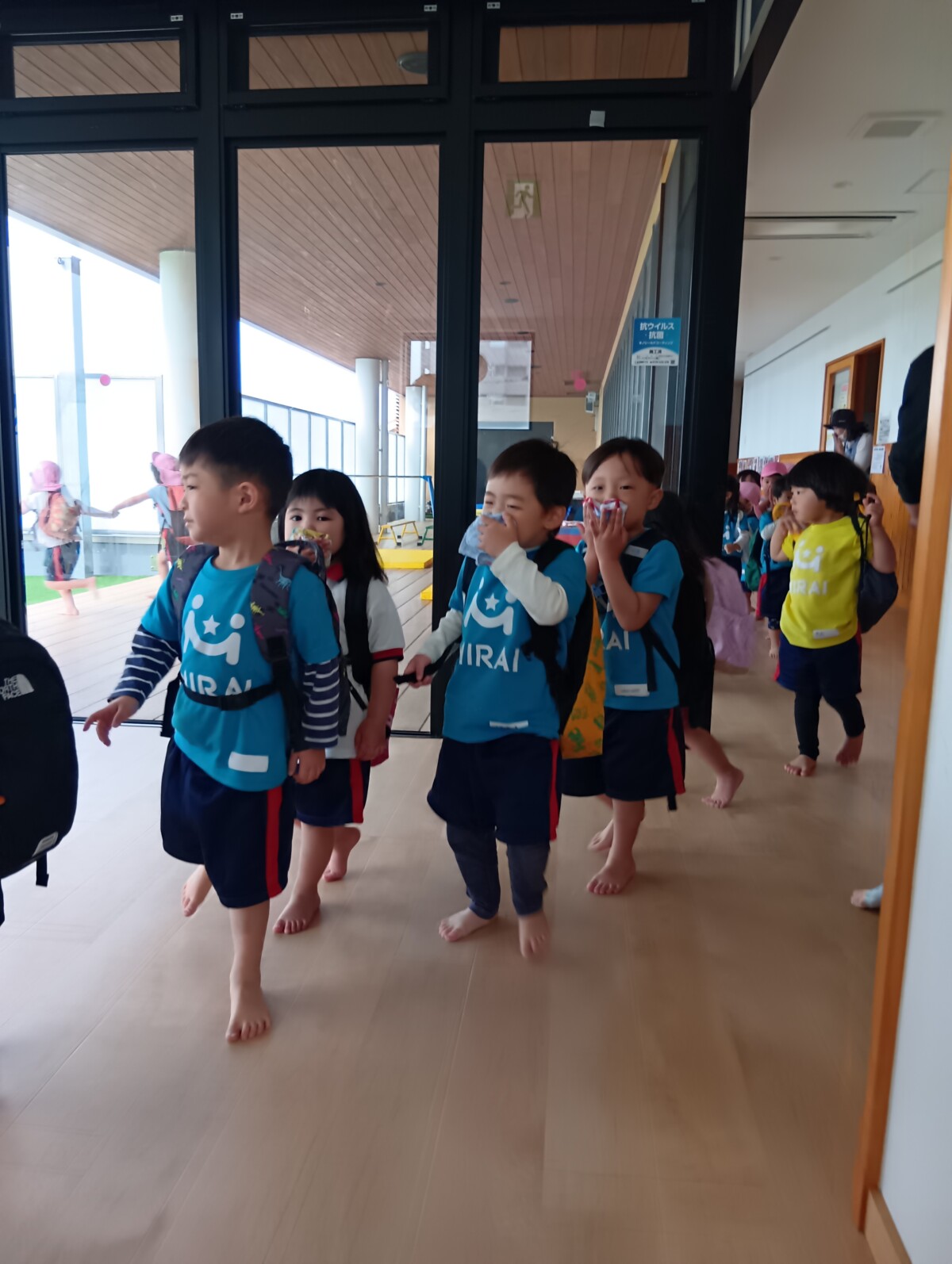 園内放送を聞いて、どのクラスも先生の話を聞いて急いで動き出します!