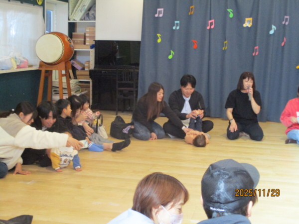 みんなの修行が無事に終わったところで、(ちびっこ忍者改め)ひかり組のおともだちと一緒に朝の会を行いました。