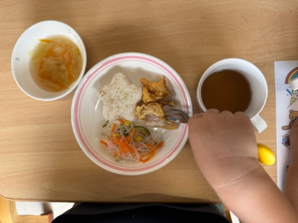 給食はお誕生日メニューのとり天!