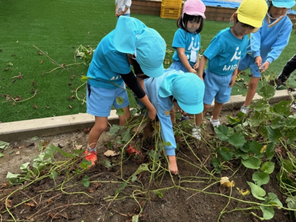 秋の収穫祭で収穫した食材は今後の保育の中で子ども達と「スイートポテト クッキング」をしたり「やきいも大会」をしたりと計画中です。