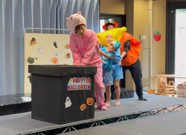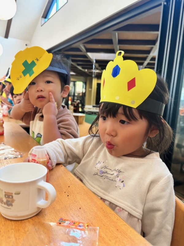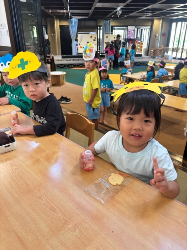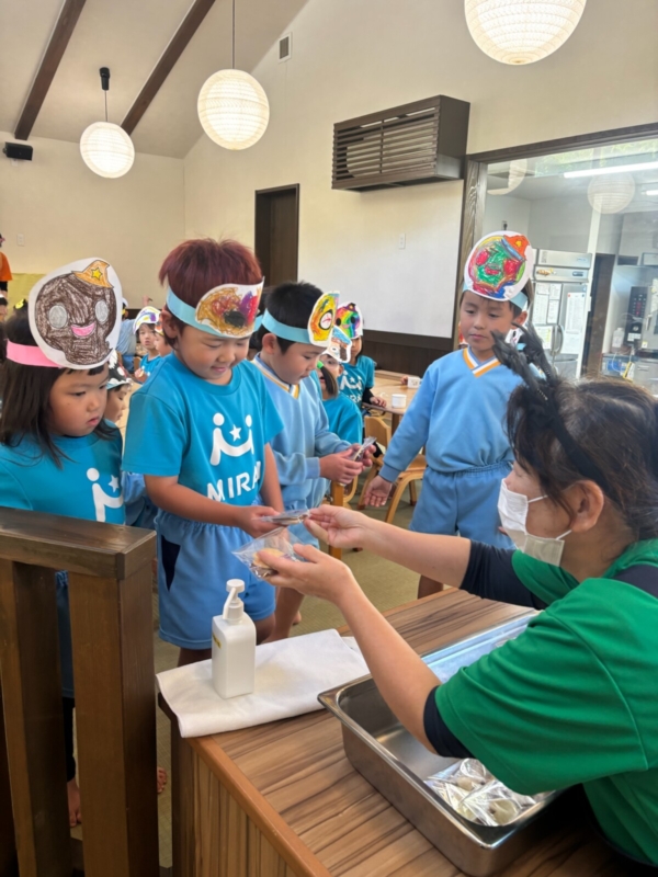 何が入ってるかな?の声に「ケーキ🎂!!!」と子ども達。