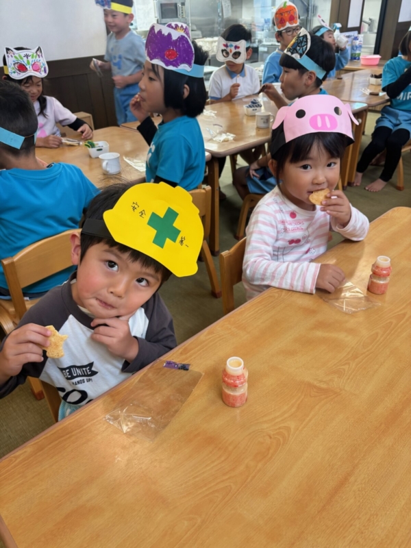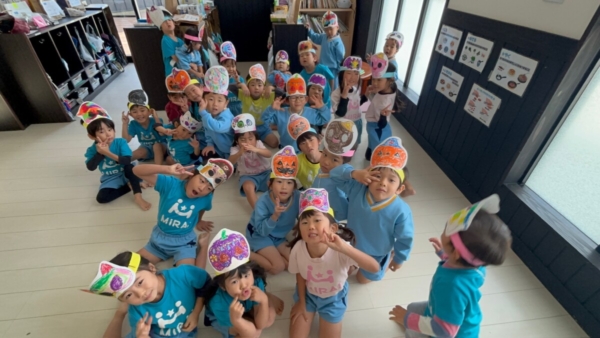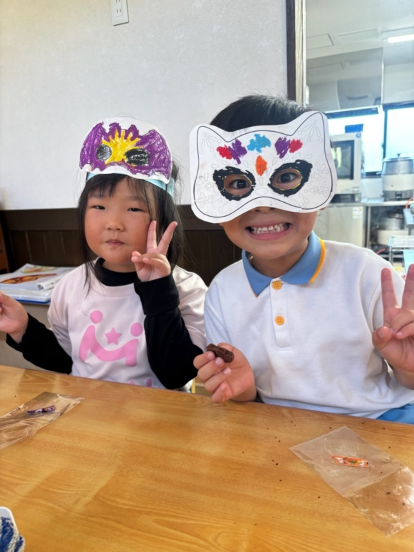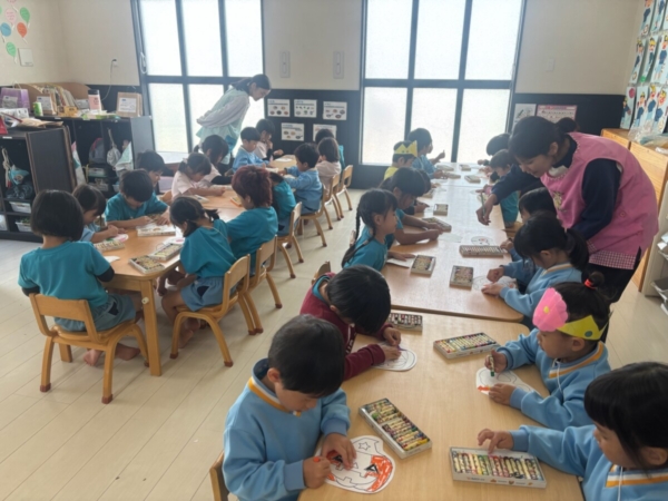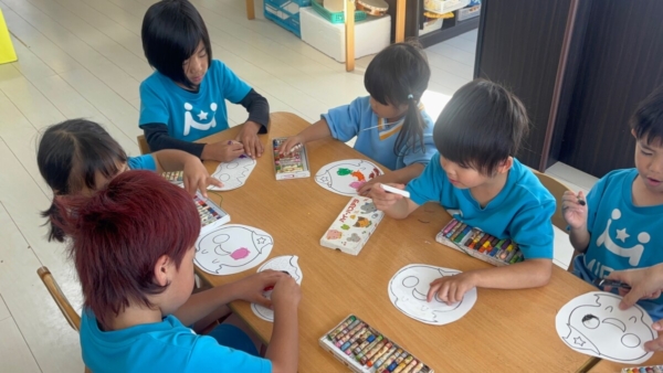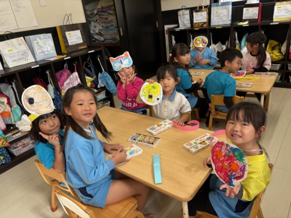 3,4,5歳児クラスではあおぞらDay(縦割り)でお面づくり🖍