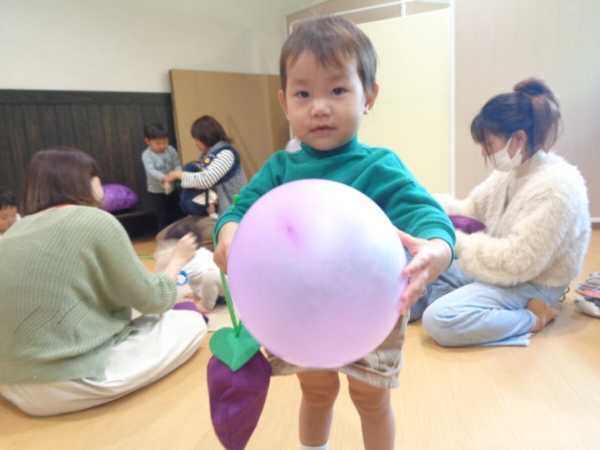 『いもほりよいしょ』の絵本を見た後は、みんなで力を合わせてお芋ほり!!🍠✨「うんとこしょどっこいしょ」とツルを引っ張ると、小さなお芋がゾロゾロ…そして最後は大きなお芋が!!😄小さなお芋には紙をビリビリ破いたり丸めたりしたものを詰めて、可愛いお芋巾着の出来上がり💕みんな、真剣に詰め込んでいましたよ✨