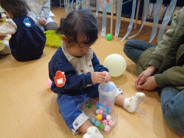 お集りが終わった後は、ボールやクリップを使って面白い遊びを楽しみましたよ🎵