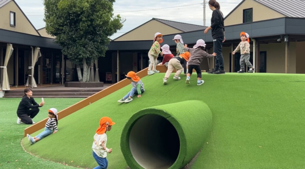 築山や大型遊具、砂場、ボール、三輪車、一本橋など思い思いに遊びました。
