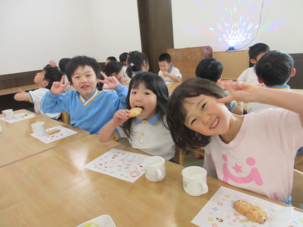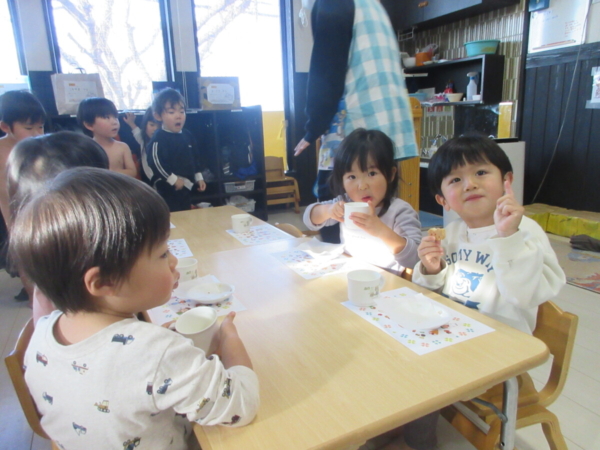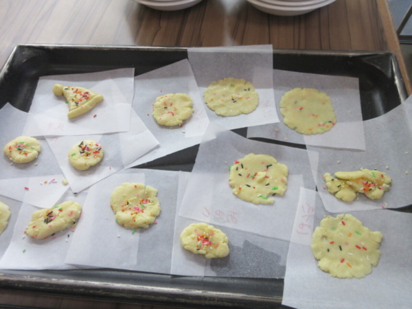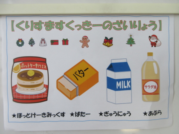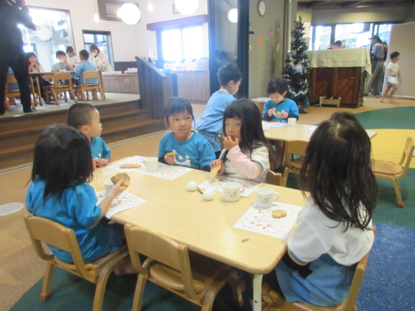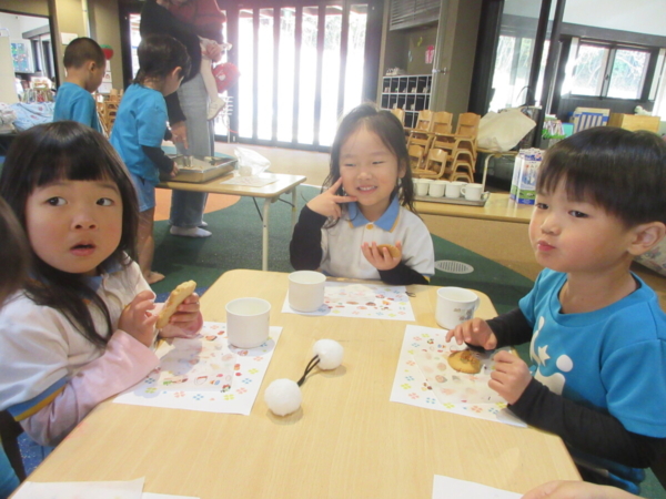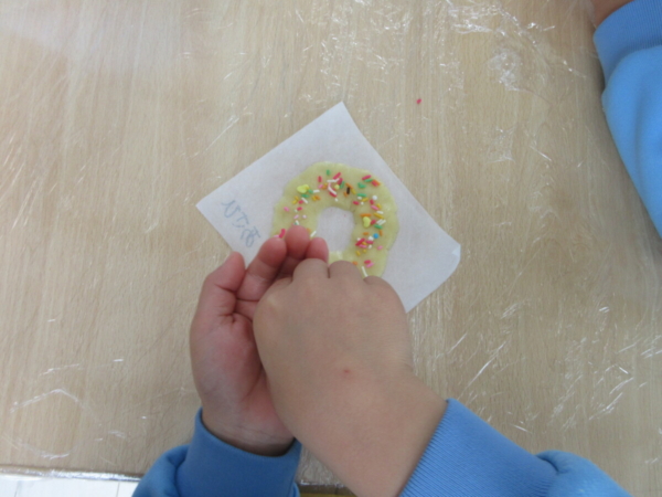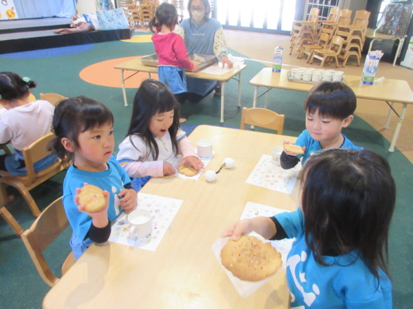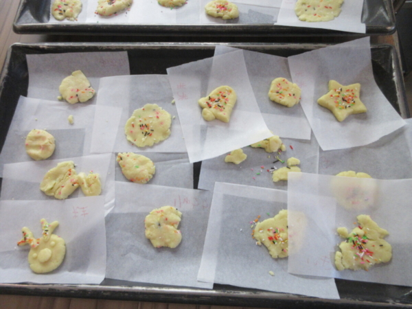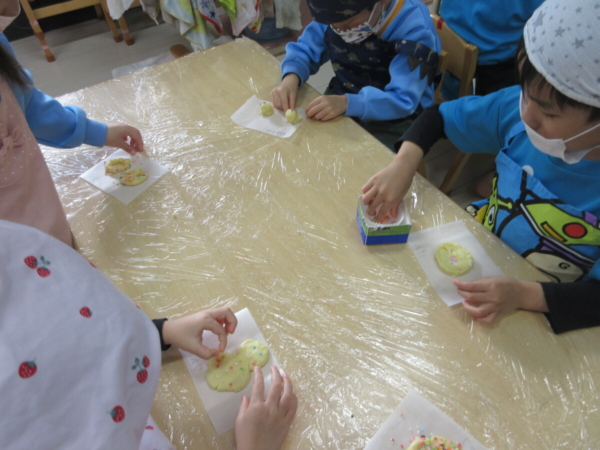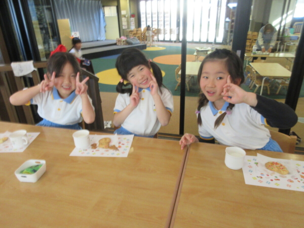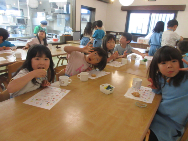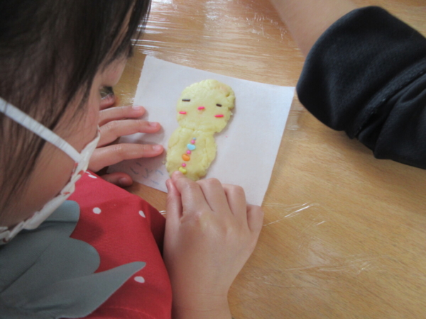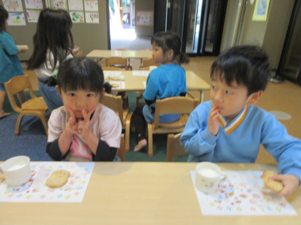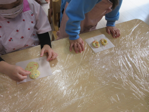 思い思いのクッキーが形作れたら給食室で焼いて、おやつの時間にいただきました