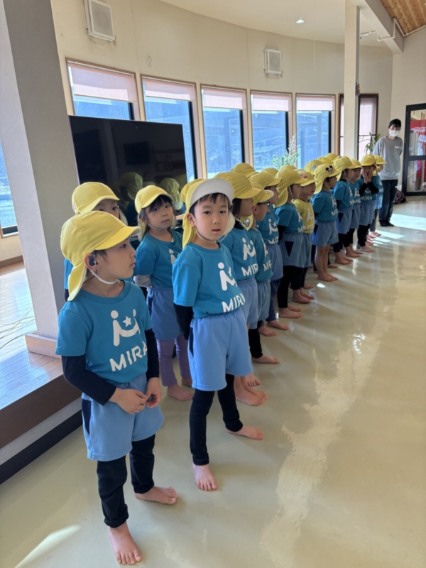 - 季節の歌の「北風小僧の寒太郎」と発表会で歌った「にじ」を歌ったり、自分達で楽器を選んでリズムも考えた「小さな世界」の合奏を披露しましたよ♪