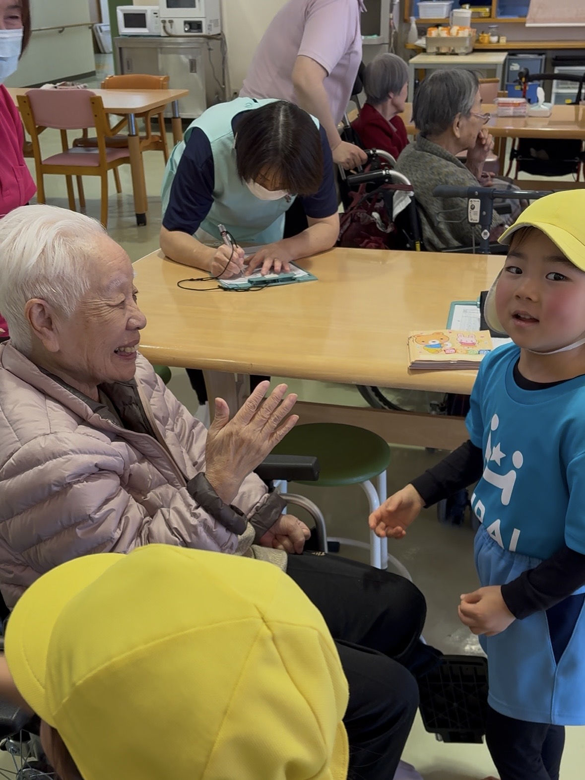 - そして、おじいちゃんおばあちゃんと『おちゃらかほい』のじゃんけん遊びをしたり、質問やお話しもして楽しく過ごしました!