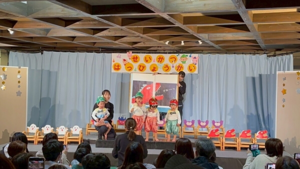 とっても天気のいい今日1月17日(土)、さくらんぼ組の生活発表会がありました!
