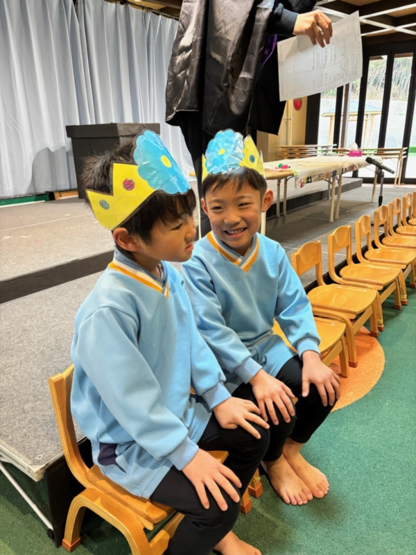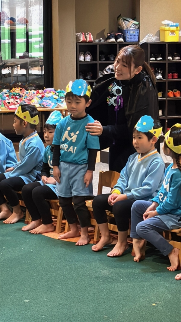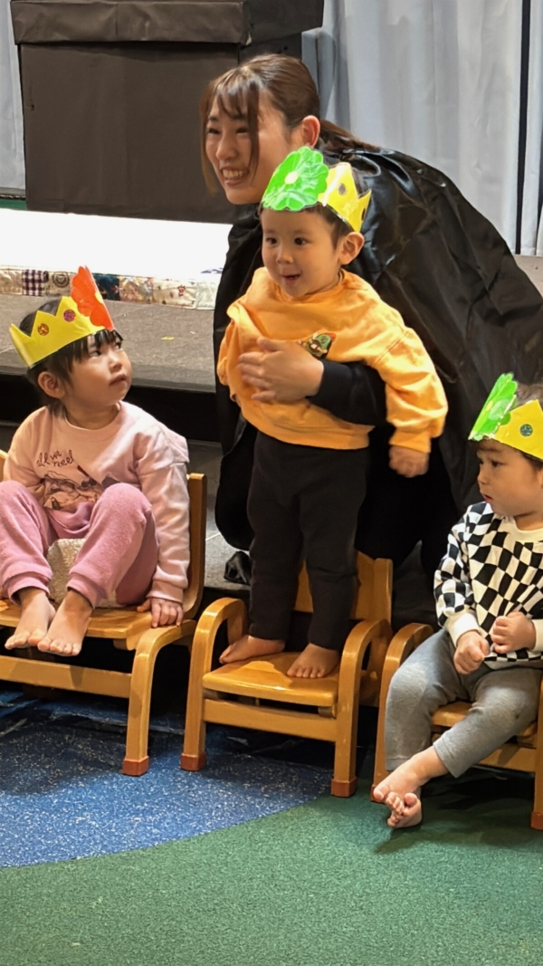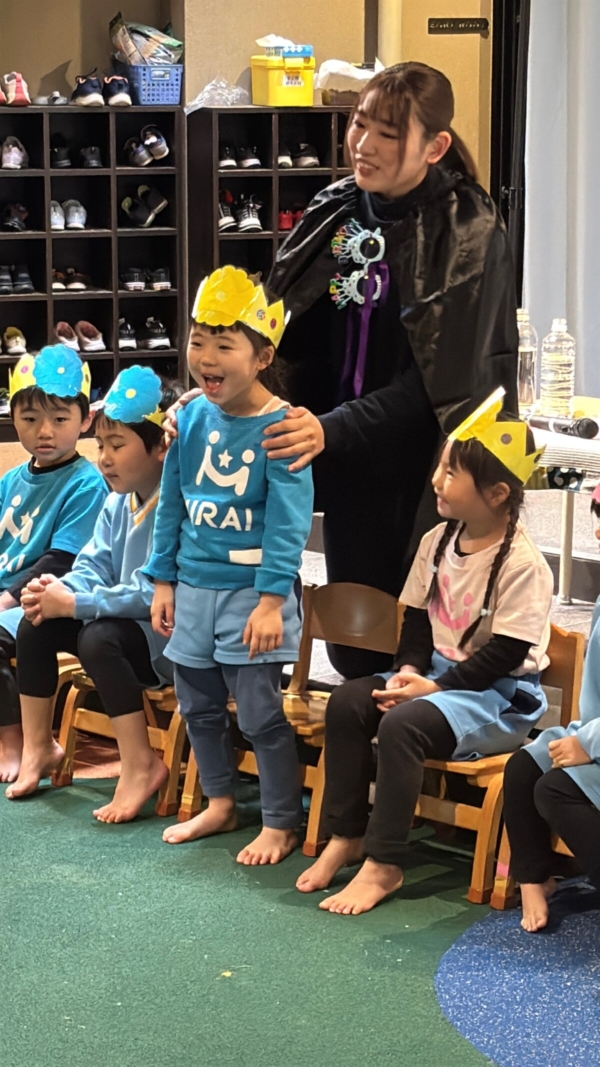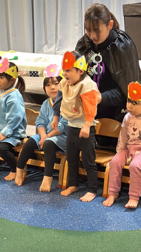 みんなでホールに集まって1月生まれのお友だちのお祝いをしました。