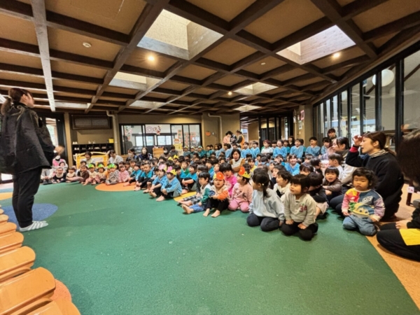 みんなでホールに集まって1月生まれのお友だちのお祝いをしました。