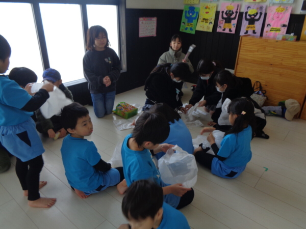 ビニール袋をふくらませて、何ができたのかな?