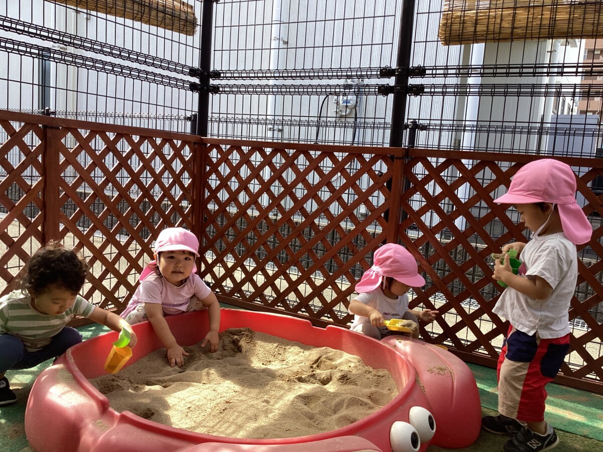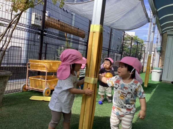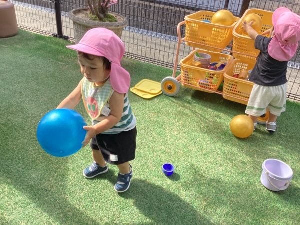 園庭では、ボール遊びや砂遊び、ジャングルジムなど忙しそうに遊ぶ様子が見られ微笑ましかったです♪