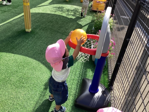 バスケットゴールが来てからは、外遊びにいくとボールを持って遊ぶようになりました♪