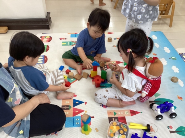 色んな形の積み木を組み合わせながら集中して完成させていましたよ(*^-^*)